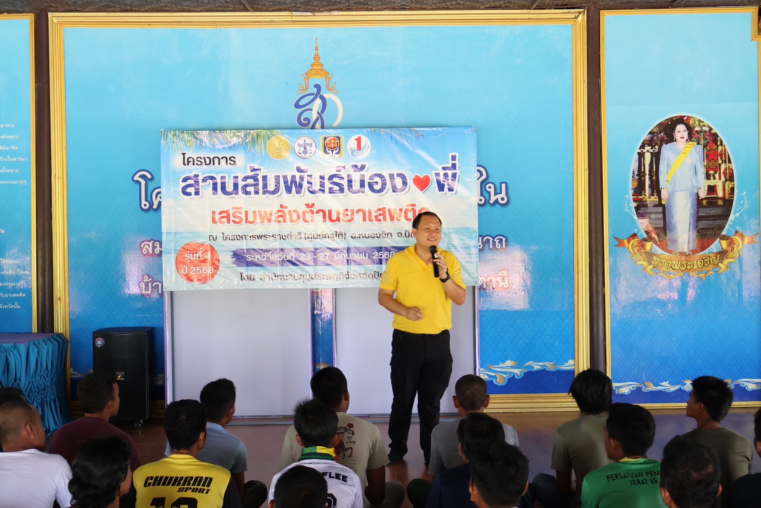 เมื่อวันที่ 23 มิถุนายน 2568 กรมคุมประพฤติ กระทรวงยุติธรรม โดยสำนักงานคุมประพฤติจังหวัดปัตตานี นำโดยนายธีรเดช แสงจันทร์ ผู้อำนวยการสำนักงานคุมประพฤติจังหวัดปัตตานี มอบหมายให้กลุ่มยุทธศาสตร์การคุมประพฤติ นำโดยนายนิอารง นิเต๊ะ พนักงานคุมประพฤติชำนาญการ จัดโครงการ "ค่ายสานสัมพันธ์ น้อง-พี่ เสริมพลังต้านยาเสพติด" รุ่นที่ 4 ประจำปีงบประมาณ พ.ศ. 2568 ซึ่งจัดขึ้นระหว่างวันที่ 23-27 มิถุนายน 2568 ณ โครงการพระราชดำริ (ศูนย์ครูใต้) อำเภอหนองจิก จังหวัดปัตตานี