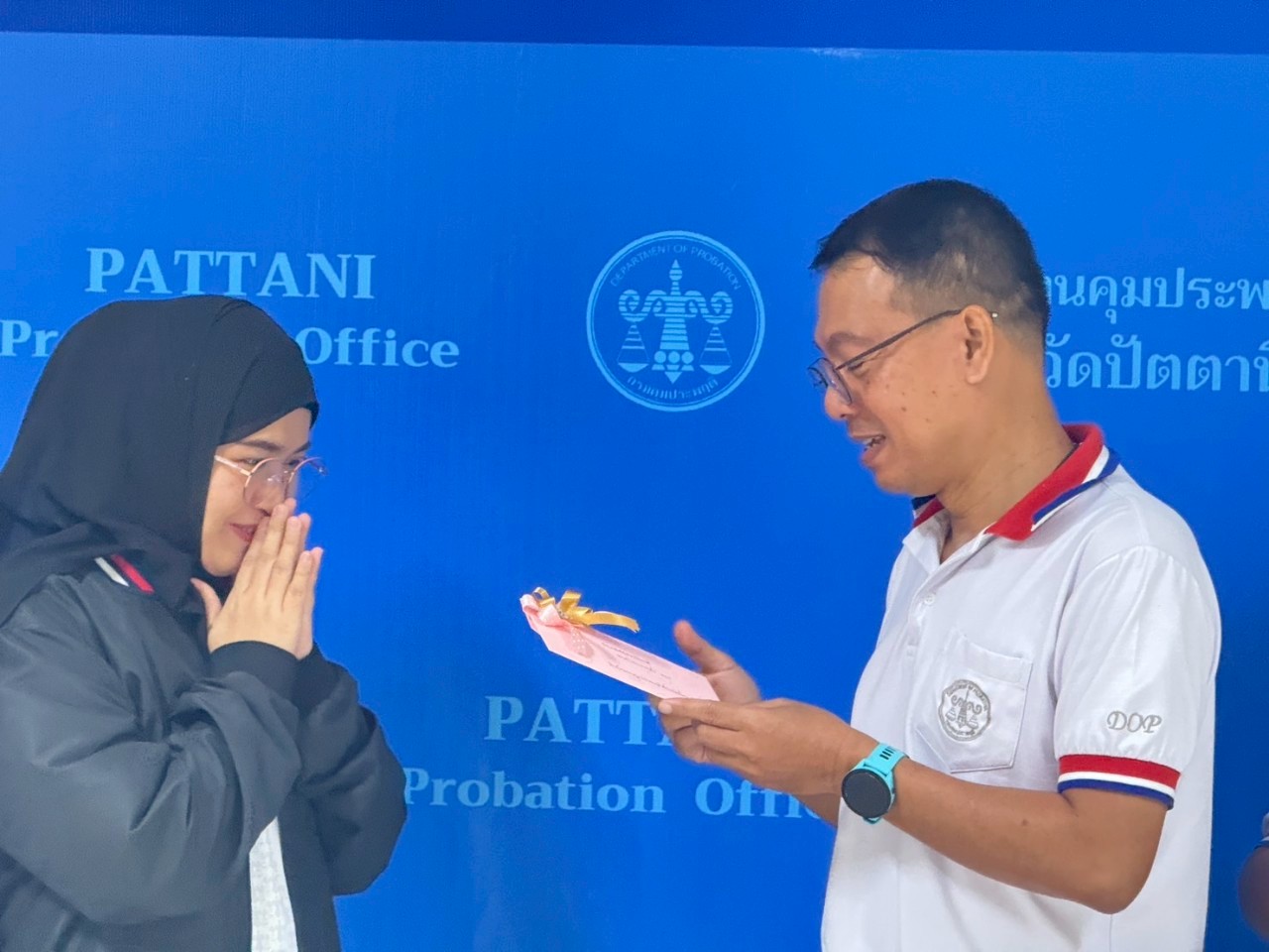 ทั้งนี้ สำนักงานคุมประพฤติจังหวัดปัตตานี ขออำนวยพรให้นางสาวต่วนเกาซัร ยายอ ประสบความสำเร็จในหน้าที่การงาน และก้าวหน้าในเส้นทางราชการอย่างมั่นคงและภาคภูมิ