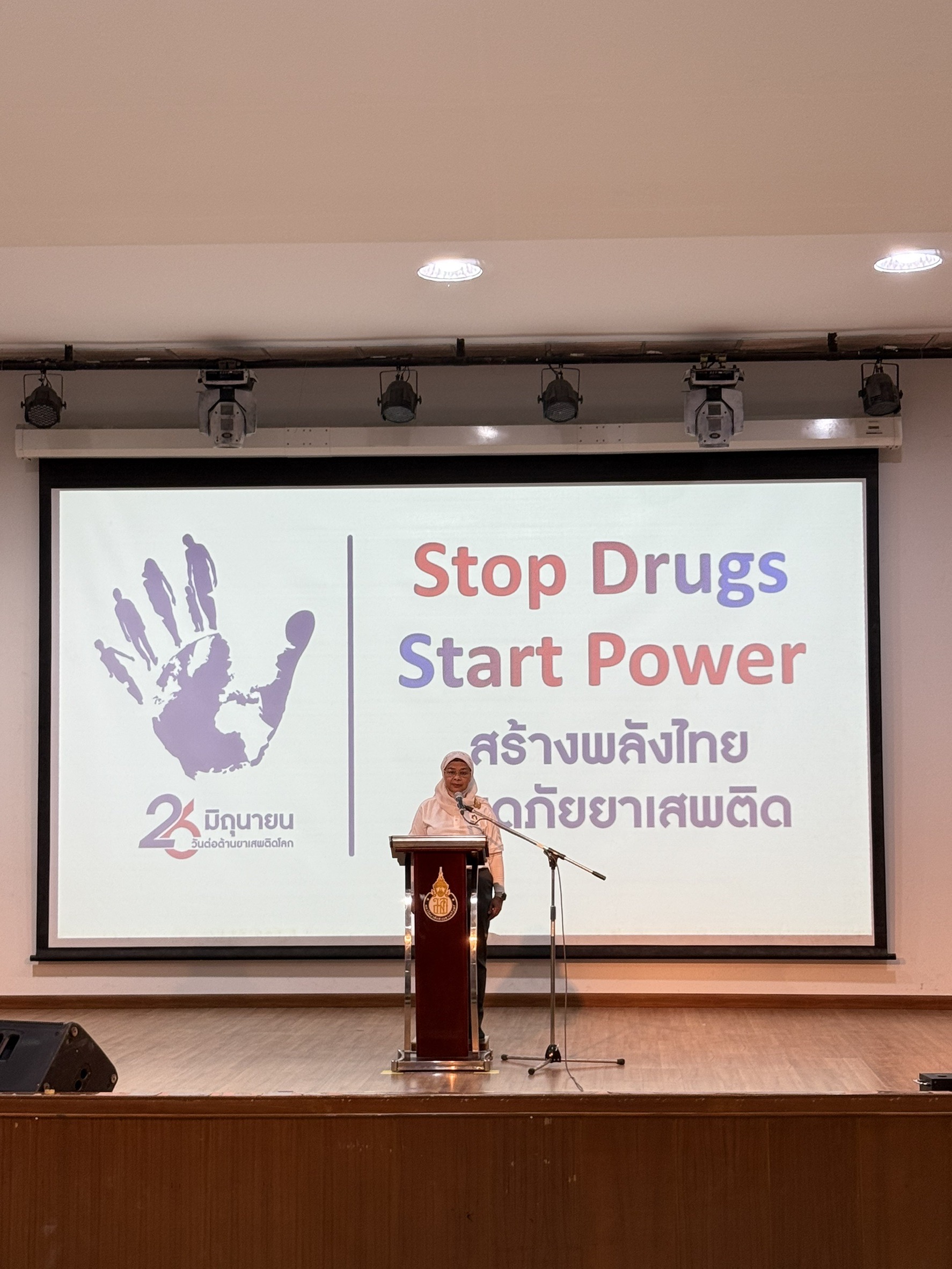 เมื่อวันที่ 26 มิถุนายน 2568 กรมคุมประพฤติ กระทรวงยุติธรรม โดยนายธีรเดช แสงจันทร์ ผู้อำนวยการสำนักงานคุมประพฤติจังหวัดปัตตานี มอบหมายให้นางสาวจีรพร ดวงประทุม หัวหน้ากลุ่มพัฒนาพฤตินิสัย พร้อมด้วยเจ้าหน้าที่สำนักงานฯ ร่วมกิจกรรมรณรงค์ประชาสัมพันธ์เนื่องในวันต่อต้านยาเสพติดโลก ประจำปี 2568 ภายใต้กรอบแนวคิด "Stop Drugs, Start Power สร้างพลังไทย หยุดภัยยาเสพติด" ณ หอประชุมใหญ่ คณะวิทยาการสื่อสาร มหาวิทยาลัยสงขลานครินทร์ วิทยาเขตปัตตานี