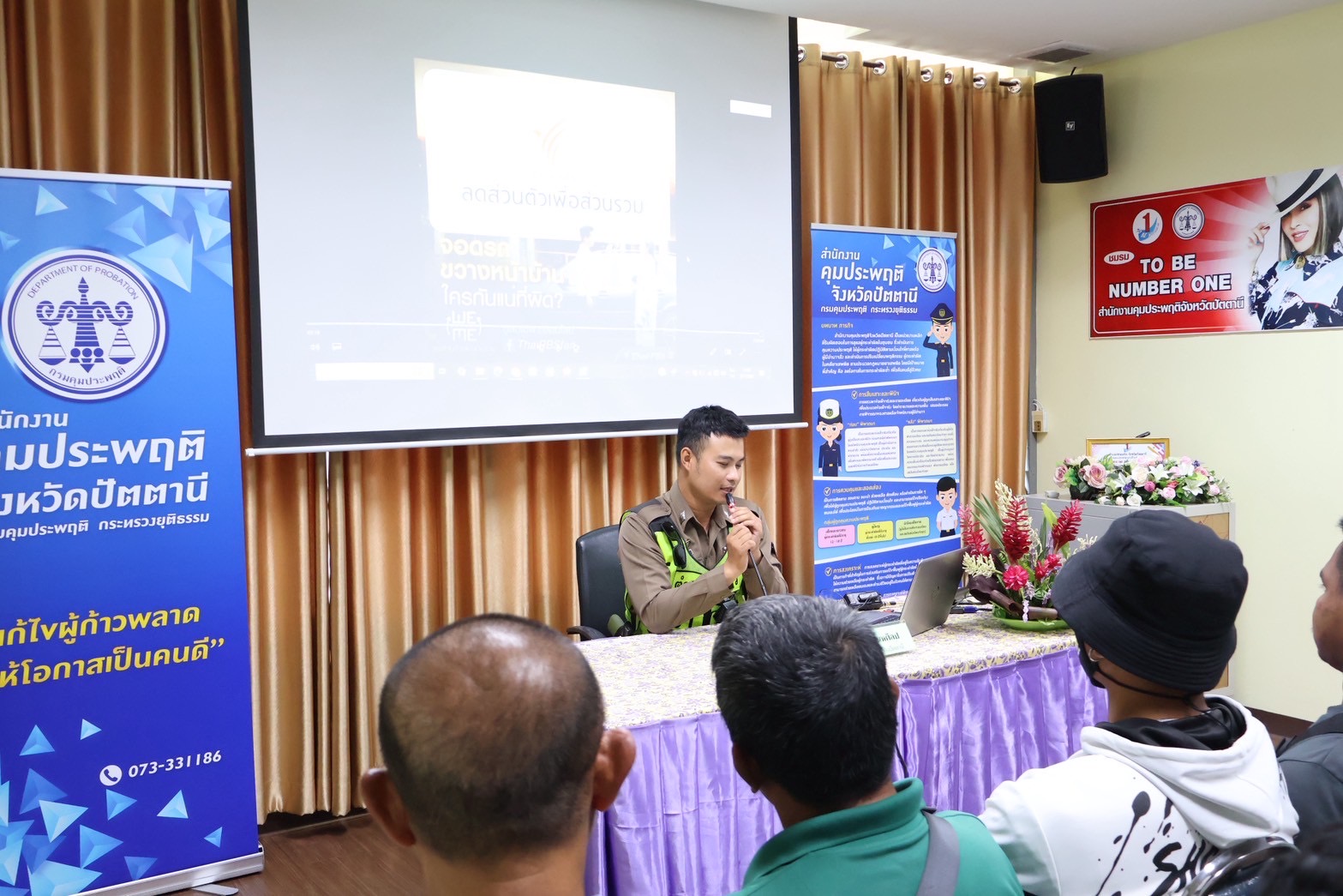 คุมประพฤติปัตตานี จัดกิจกรรมอบรมความรู้กฎหมายจราจร โครงการ "ขับขี่มีสติ ชีวิตไม่สะดุด" ประจำปีงบประมาณ พ.ศ. 2568