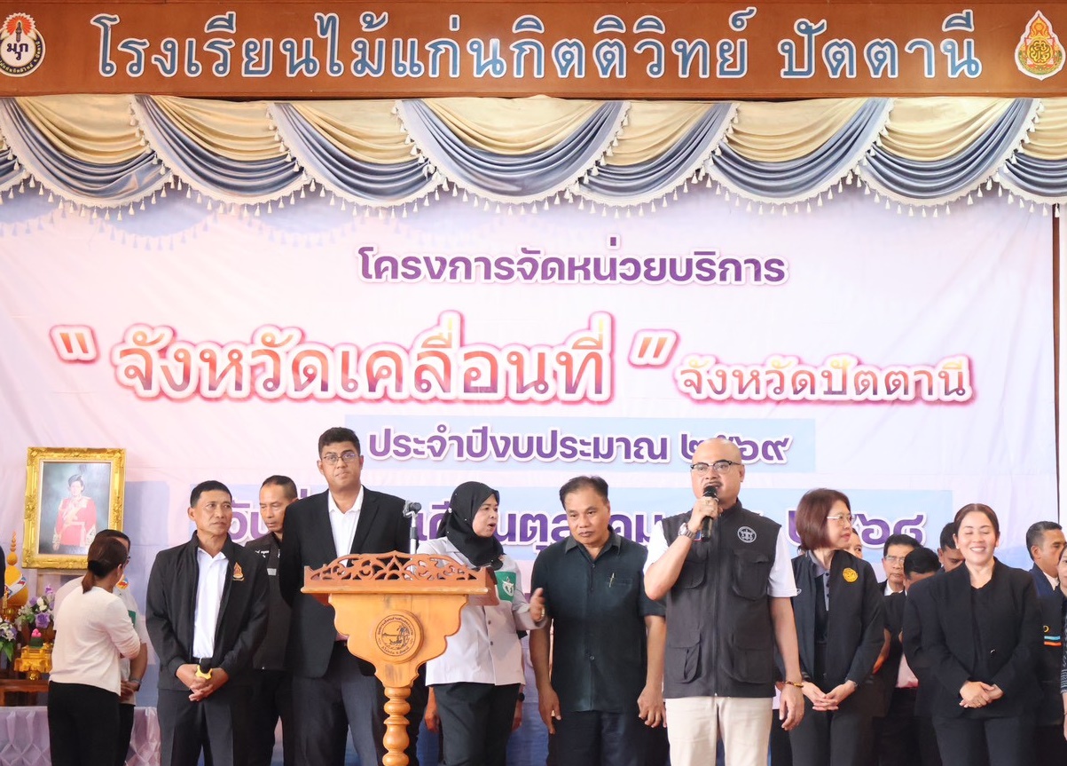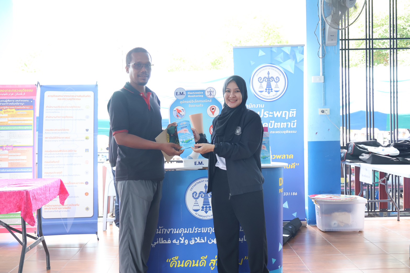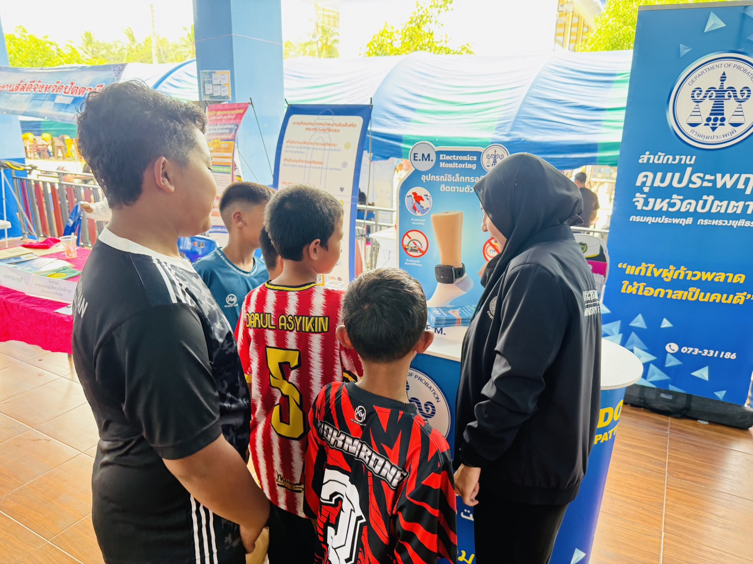 เมื่อวันที่ 29 ตุลาคม 2568 กรมคุมประพฤติ กระทรวงยุติธรรม โดย นายธีรเดช แสงจันทร์ ผู้อำนวยการสำนักงานคุมประพฤติจังหวัดปัตตานี มอบหมายให้กลุ่มยุทธศาสตร์การคุมประพฤติ นำโดยนายสุกฤษ บุญสิทธิ์ พนักงานคุมประพฤติชำนาญการ พร้อมด้วยพนักงานคุมประพฤติ เจ้าหน้าที่ผู้ประสานงานชุมชน ร่วมออกหน่วยบริการประชาชนในกิจกรรม "จังหวัดเคลื่อนที่" ครั้งที่ 1/2569 ประจำปีงบประมาณ 2569 ณ โรงเรียนไม้แก่นกิตติวิทย์ หมู่ที่ 4 ตำบลไทรทอง อำเภอไม้แก่น จังหวัดปัตตานี โดยมีนางพาตีเมาะ สะดียามู ผู้ว่าราชการจังหวัดปัตตานี เป็นประธานในพิธีเปิดโครงการ ในการนี้ สำนักงานคุมประพฤติจังหวัดปัตตานี ได้ร่วมออกหน่วยจัดนิทรรศการให้ความรู้แก่ประชาชน นักเรียน และเยาวชนในพื้นที่ เกี่ยวกับบทบาทและภารกิจของ กรมคุมประพฤติ กระทรวงยุติธรรม รวมถึงเผยแพร่ความรู้ด้านกฎหมายที่เกี่ยวข้องกับงานคุมประพฤติ การใช้อุปกรณ์อิเล็กทรอนิกส์ติดตามตัว (EM) และการป้องกันปัญหายาเสพติด พร้อมทั้งเปิดโอกาสให้ผู้เข้าร่วมกิจกรรม ได้ร่วมสนุกกับกิจกรรมตอบคำถามชิงรางวัลเพื่อเสริมสร้างการเรียนรู้และการมีส่วนร่วมของชุมชนอย่างสร้างสรรค์