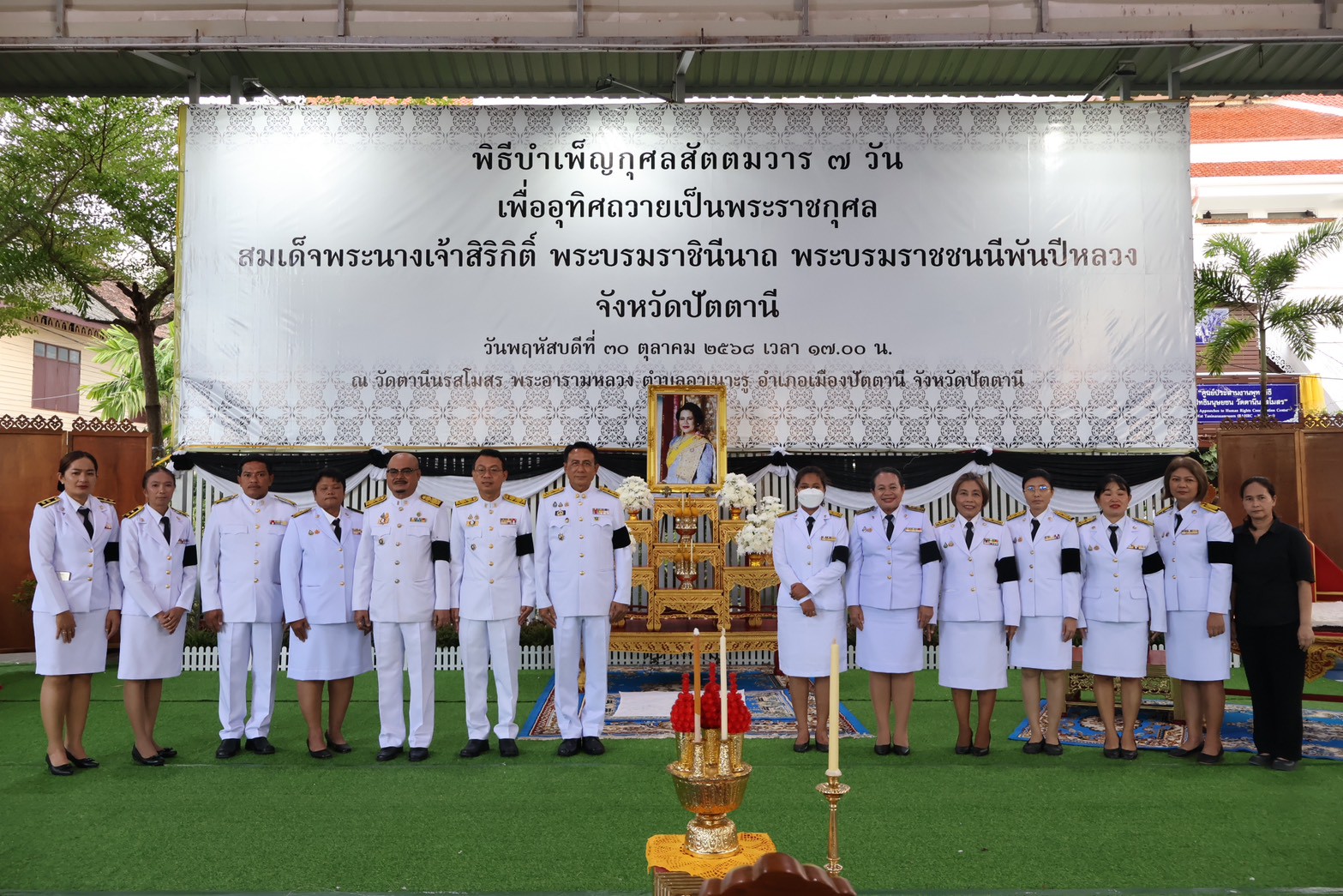 เมื่อวันที่ 30 ตุลาคม 2568 กรมคุมประพฤติ กระทรวงยุติธรรม โดย นายธีรเดช แสงจันทร์ ผู้อำนวยการสำนักงานคุมประพฤติจังหวัดปัตตานี พร้อมด้วยหัวหน้ากลุ่มยุทธศาสตร์การคุมประพฤติ หัวหน้าศูนย์พัฒนาพฤตินิสัย และเจ้าหน้าที่สำนักงานฯ เข้าร่วมพิธีสวดพระอภิธรรมอุทิศถวายพระราชกุศลแด่สมเด็จพระนางเจ้าสิริกิติ์พระบรมราชินีนาถ พระบรมราชชนนีพันปีหลวง ในการบำเพ็ญกุศล สัตตมวาร (7 วัน) โดยมีนายสนั่น สนธิเมือง รองผู้ว่าราชการจังหวัดปัตตานี เป็นประธานในพิธี พร้อมทั้งหัวหน้าส่วนราชการทุกส่วนราชการ ข้าราชการ เจ้าหน้าที่ รัฐวิสาหกิจ อำเภอทุกอำเภอ องค์การบริหารส่วนจังหวัดปัตตานี เทศบาลเมืองทุกแห่ง ประชาชน และหน่วยงานที่เกี่ยวข้องเข้าร่วม ณ วัดตานีนรสโมสร พระอารามหลวง ตำบลอาเนาะรู อำเภอเมืองปัตตานี จังหวัดปัตตานี