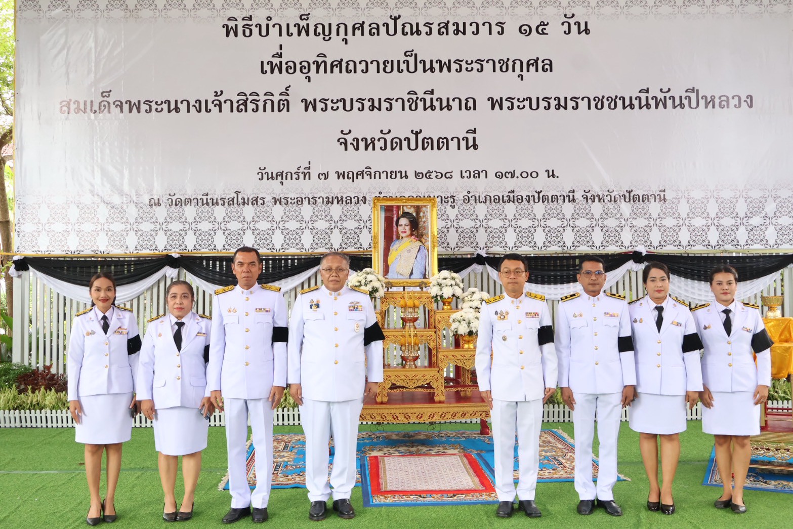 เมื่อวันที่ 7 พฤศจิกายน 2568 กรมคุมประพฤติ กระทรวงยุติธรรม โดย นายธีรเดช แสงจันทร์ ผู้อำนวยการสำนักงานคุมประพฤติจังหวัดปัตตานี พร้อมด้วยข้าราชการ และเจ้าหน้าที่สำนักงานฯ เข้าร่วมพิธีสวด พระอภิธรรมอุทิศถวายพระราชกุศลแด่ สมเด็จพระนางเจ้าสิริกิติ์พระบรมราชินีนาถ พระบรมราชชนนีพันปีหลวง ในการบำเพ็ญกุศล ปัณรสมวาร (15 วัน) โดยมีนางพาตีเมาะ สะดียามู ผู้ว่าราชการจังหวัดปัตตานี เป็นประธานในพิธี และนายสนั่น สนธิเมือง รองผู้ว่าราชการจังหวัดปัตตานี เป็นผู้นำพิธี ทั้งนี้มี นายสิรภพ ดวงสอดศรี ผู้ช่วยรัฐมนตรีประจำกระทรวงยุติธรรม พร้อมด้วยหัวหน้าส่วนราชการ ข้าราชการ เจ้าหน้าที่ของส่วนราชการ ภาคเอกชน และประชาชนทุกหมู่เหล่าในจังหวัดปัตตานี เข้าร่วมพิธีโดยพร้อมเพรียงกัน ณ วัดตานีนรสโมสร พระอารามหลวง ตำบลอาเนาะรู อำเภอเมืองปัตตานี จังหวัดปัตตานี