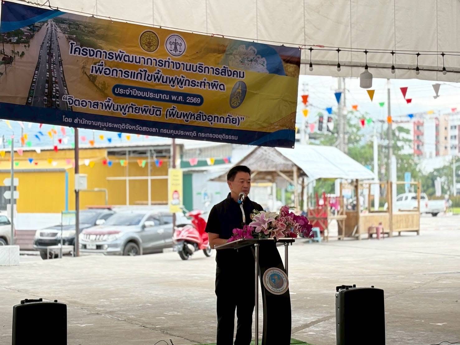 วันที่ 24 ธันวาคม 2568 กรมคุมประพฤติ กระทรวงยุติธรรม โดยนายธีรเดช แสงจันทร์ ผู้อำนวยการสำนักงานคุมประพฤติจังหวัดปัตตานี นำเจ้าหน้าที่สำนักงานฯ พร้อมด้วยอาสาสมัครคุมประพฤติ และผู้ถูกคุมความประพฤติ เข้าร่วมโครงการพัฒนาการทำงานบริการสังคมเพื่อการแก้ไขฟื้นฟูผู้กระทำผิด ประจำปีงบประมาณ พ.ศ. 2569 ภายใต้กิจกรรม "จิตอาสาฟื้นฟูภัยพิบัติ (ฟื้นฟูหลังอุทกภัย)" ณ ตลาดสมอลล์ คลอง ร. 5 ตำบลคอหงส์ อำเภอหาดใหญ่ จังหวัดสงขลา โดยประสานความร่วมมือระหว่างสำนักงานคุมประพฤติจังหวัดสงขลา สำนักงานคุมประพฤติจังหวัดสงขลา สาขานาทวี และสำนักงานคุมประพฤติจังหวัดปัตตานี โดยมีวัตถุประสงค์เพื่อส่งเสริมการมีส่วนร่วม บูรณาการความร่วมมือด้านการทำงานบริการสังคม และปลูกฝังจิตอาสาในการช่วยเหลือสังคม ภายหลังเกิดสถานการณ์อุทกภัย โดยมีนายสิทธิ สุธีวงศ์ รองอธิบดีกรมคุมประพฤติเป็นประธานในพิธี